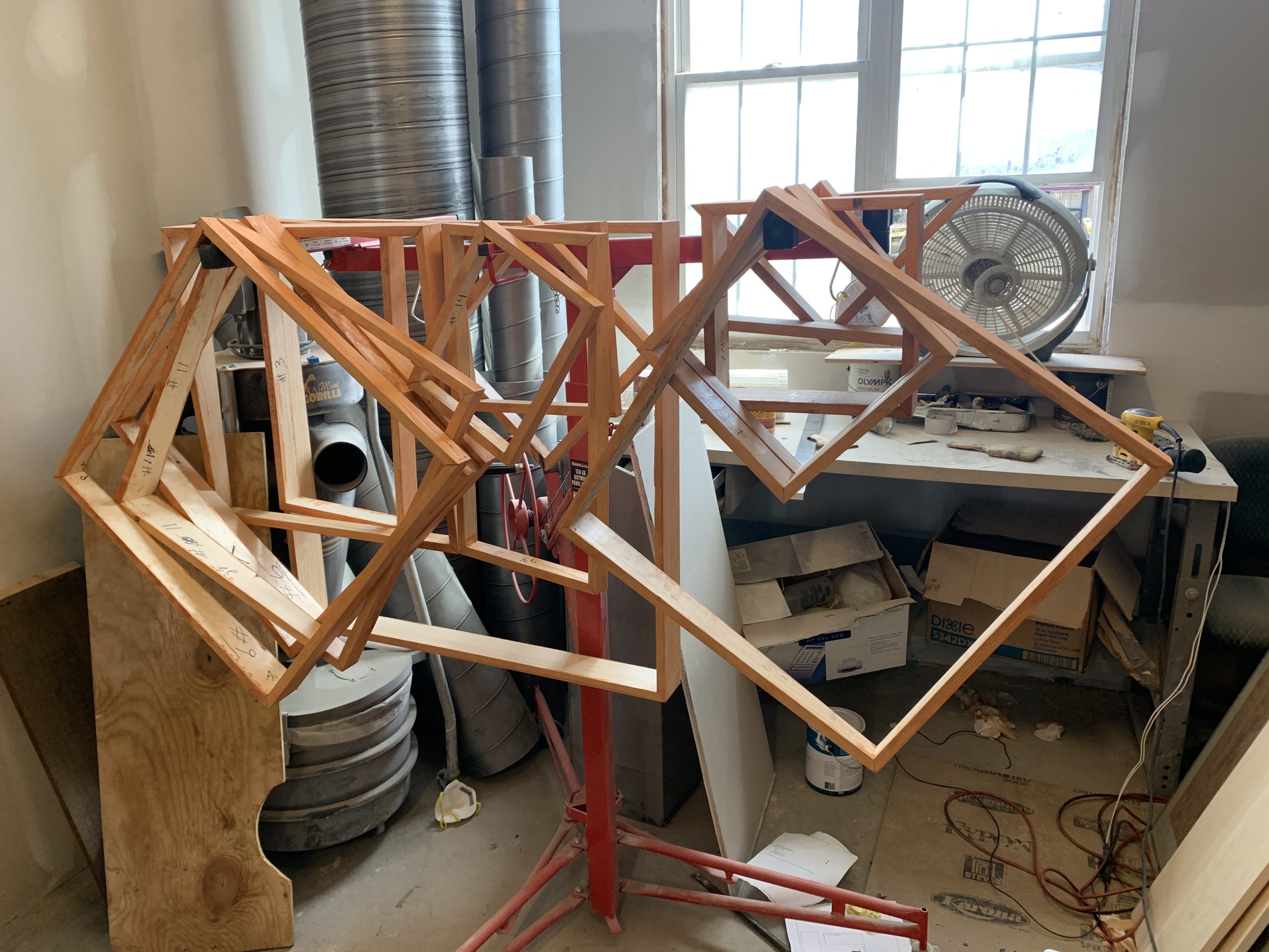 Once we get it back to our Wood shop, then we prepare the wood by removing any unwanted nails, planning, ripping and chopping to our specification. This allows us to use wood that is far superior to the wood of today. Whenever possible, we try to utilize this in our acoustical designs because diffusion is much better when seasoned old wood is used.